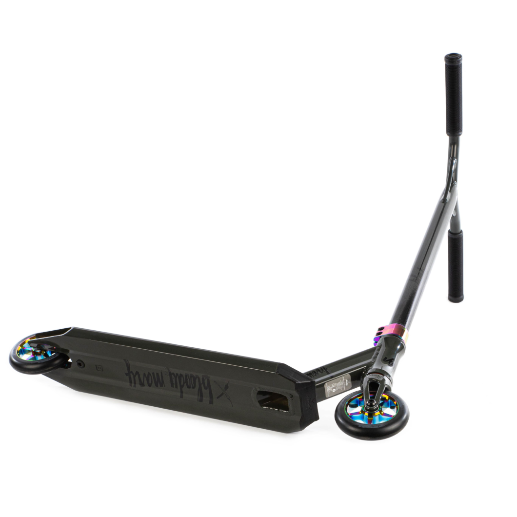 The Scooter Versatyl Bloody Mary V2 Neochrome is the ultimate entry-level scooter, designed by the creator of Ethic. With an unbeatable price/quality ratio, this scooter offers weight optimization for optimal responsiveness. Featuring an IHC compression system, wider deck, and modifications for increased strength and weight, the Bloody Mary is a top choice for beginners.
